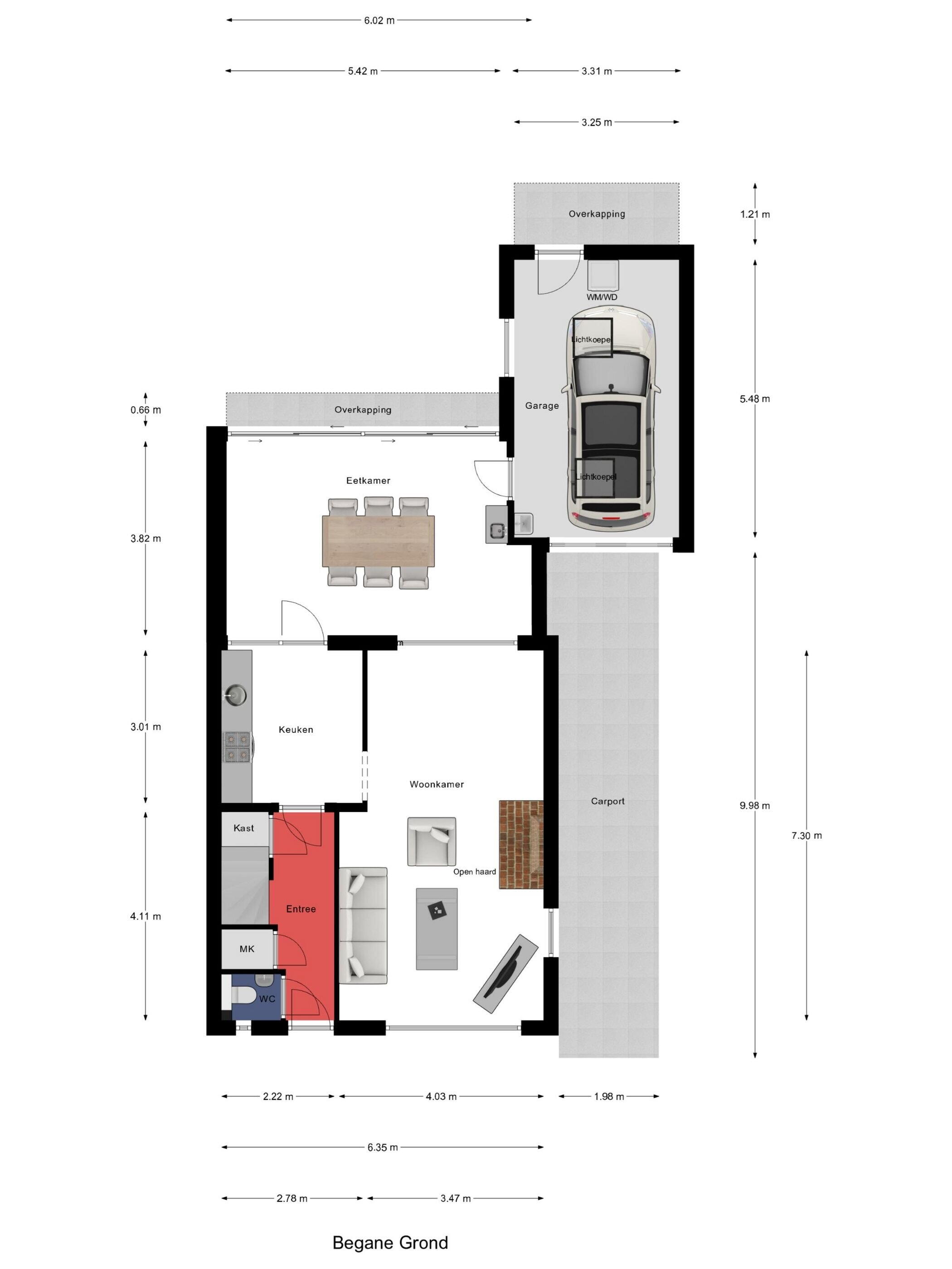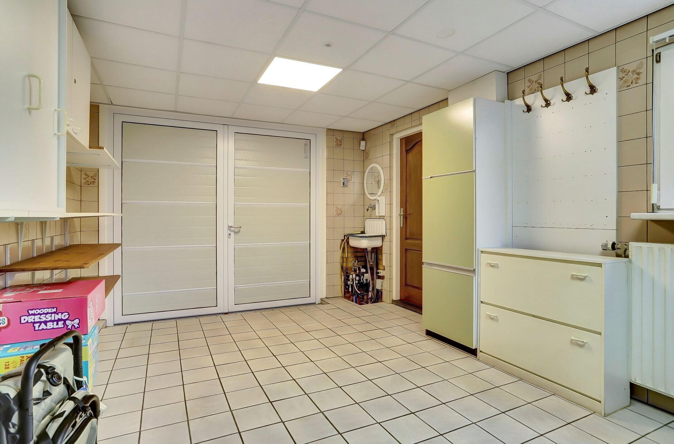 De garage is multifunctioneel en biedt de mogelijkheid om een auto binnen te plaatsen via de dubbele kunststof deuren of om te parkeren onder de carport bij de oprit. Verder is de garage uitgerust met diverse inbouwkasten en de aansluitingen voor het witgoed wat zorgt voor extra opslag- en gebruiksruimte.