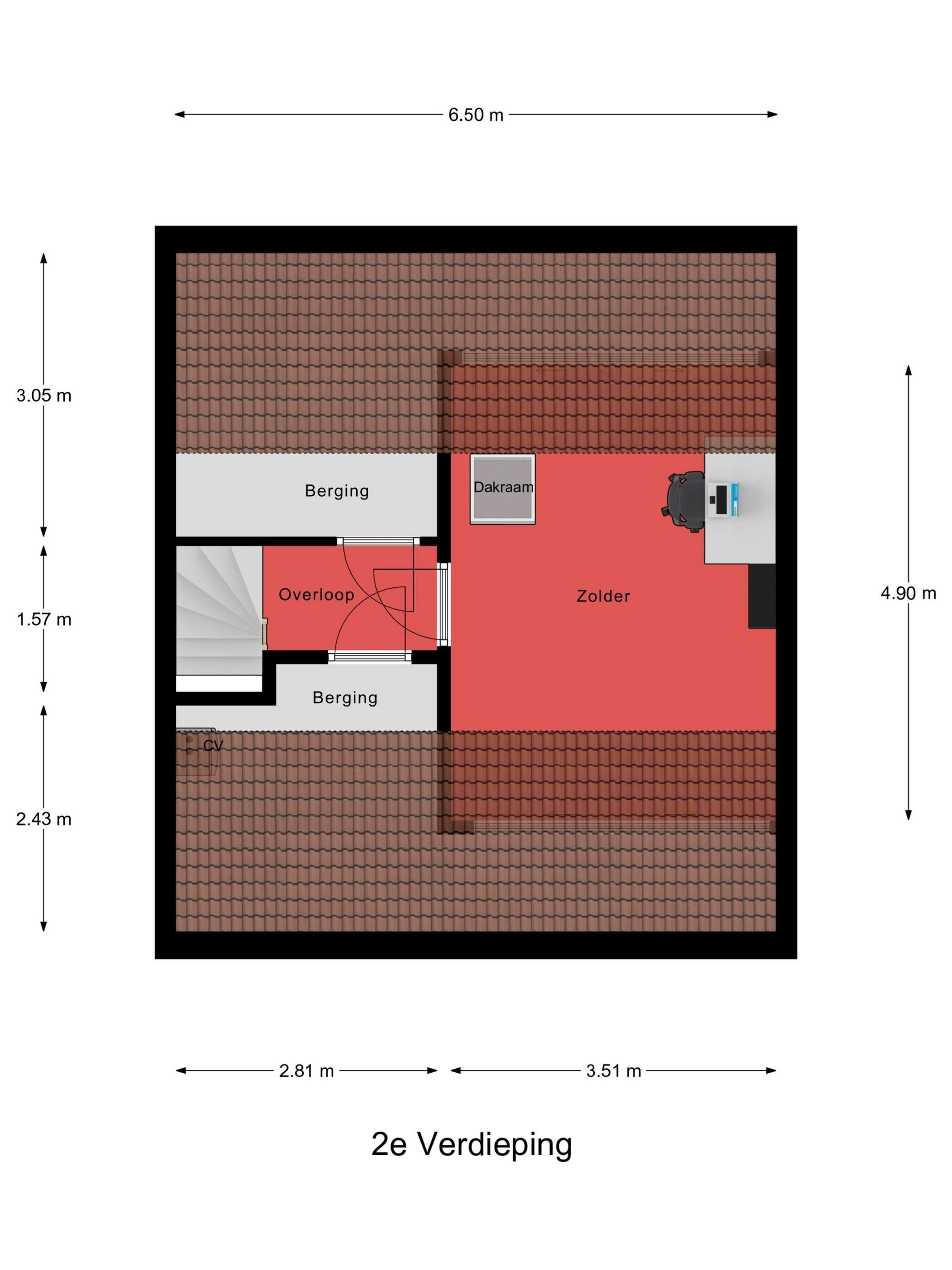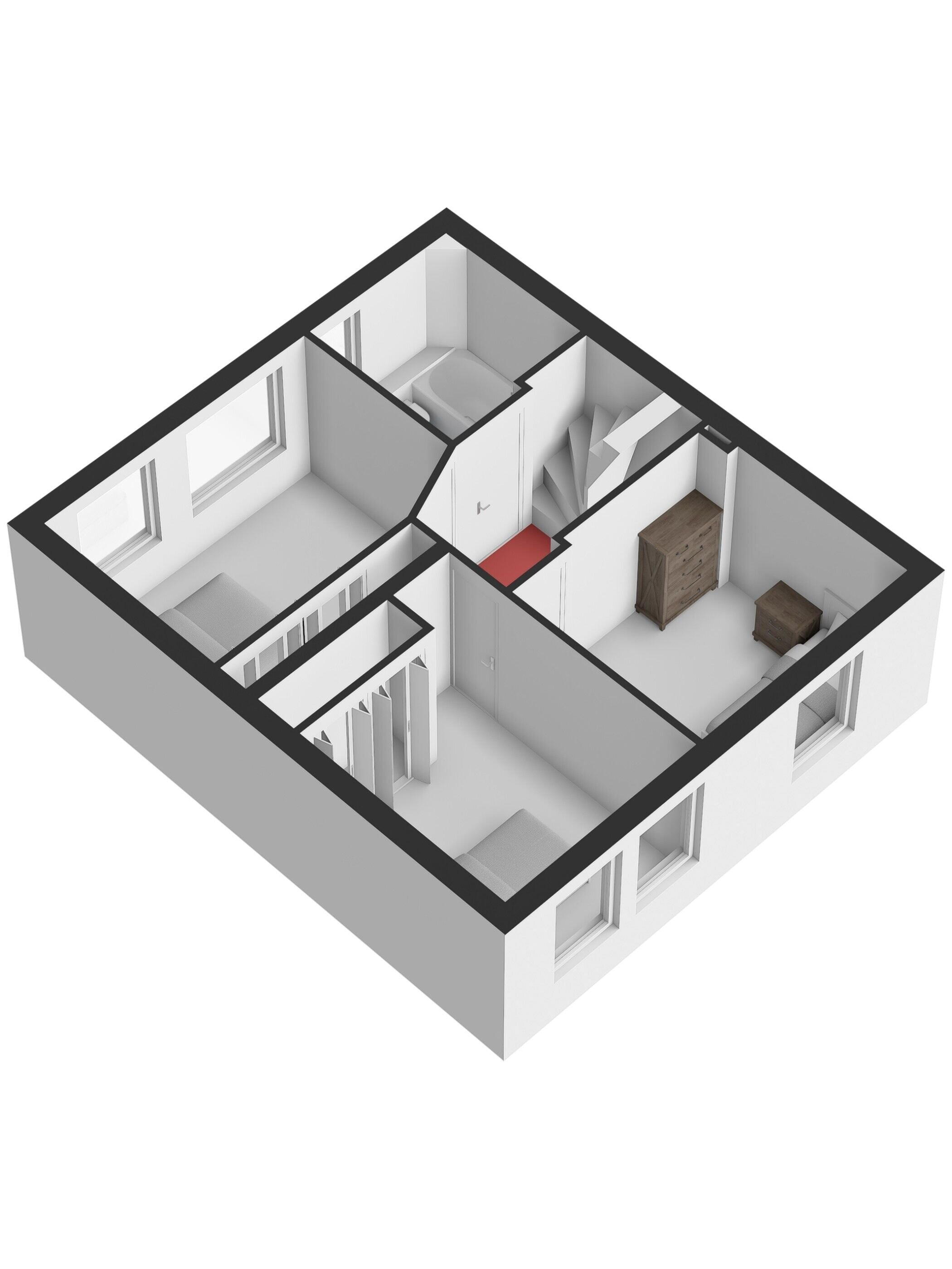 De zolderverdieping is bereikbaar via een vaste trap en vormt een volwaardige en veelzijdige extra woonlaag. Hier bevindt zich een vierde slaapkamer maar deze ruimte leent zich net zo goed als fijne werkplek, hobbyruimte of logeerkamer.